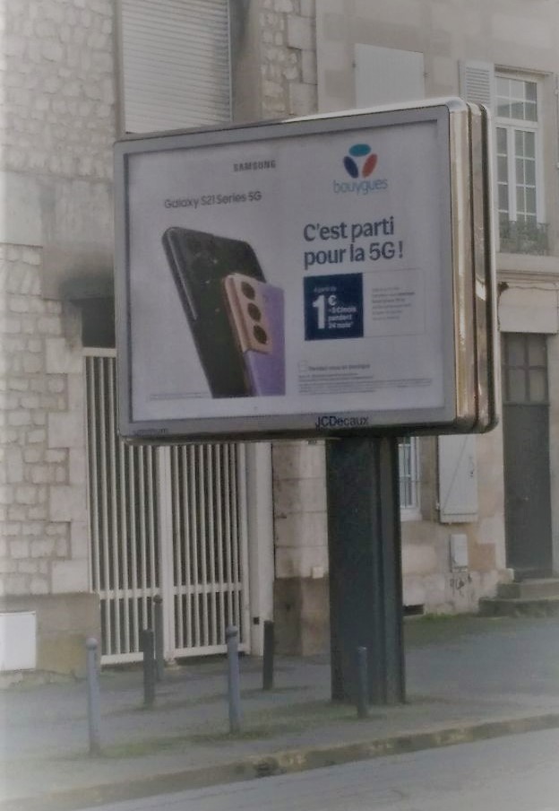Qui a dit que les écolos souhaitaient un retour à la bougie et étaient adversaires du progrès technologique ? Peu importe que la convention citoyenne sur le climat ait demandé un moratoire sur la 5G, en particulier concernant l’impact environnemental de cette technologie, la mairie de Poitiers semble avoir un autre avis sur la question puisqu’elle nous abreuve de ces beaux panneaux dans nos rues ! C’est aussi une manière de soutenir un petit groupe qui vous informe avec sérieux (TF1) qui agit pour l’environnement au quotidien avec sa filiale de construction. Le camarade Martin Bouygues et son fils Edward remercient la mairie de Poitiers pour ce soutien affiché dans les rues !